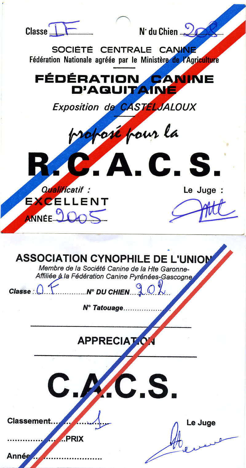 1ère EXCELLENTE en COF RCACS au CACS de CASTELJALOUX 2005 à 17 mois